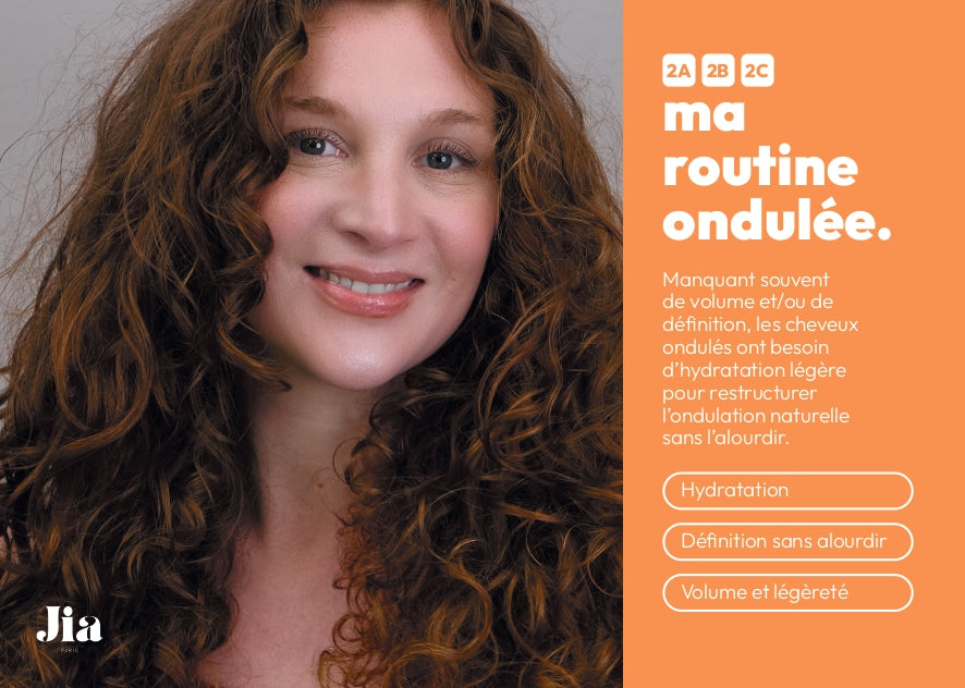 Découvrez notre routine For My Curls de Jia Paris spécialement adaptée à vos cheveux ondulés. Du lavage au coiffage en passant par les soins, nous vous avons sélectionné la meilleure combinaison de produits. Ce type de cheveux aux ondulations en forme de S manque souvent de volume et/ou de définition. Il a besoin d’hydratants légers en petite quantité qui ne vont pas alourdir le cheveu et d’une fixation tout en légèreté pour accentuer l’ondulation naturelle.