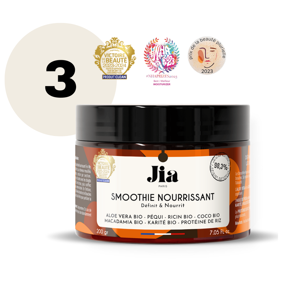 Une fois par semaine, utilise notre Leave-In Conditionner pour nourrir et renforcer en profondeur. Les autres jours, un Smoothie Nourrissant plus léger fait le travail pour hydrater et définir sans surcharger.